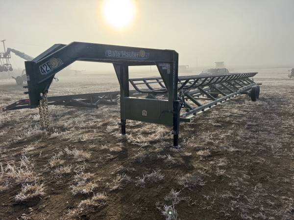 Bale trailer, 42 foot, Hydraulic dump, single row. 16 ply Tires In stock. $8,495 Heavy Duty Built!! West Valley, Industrias America. 7992616 We sell - Header Trailers, grapple buckets, box blades,...